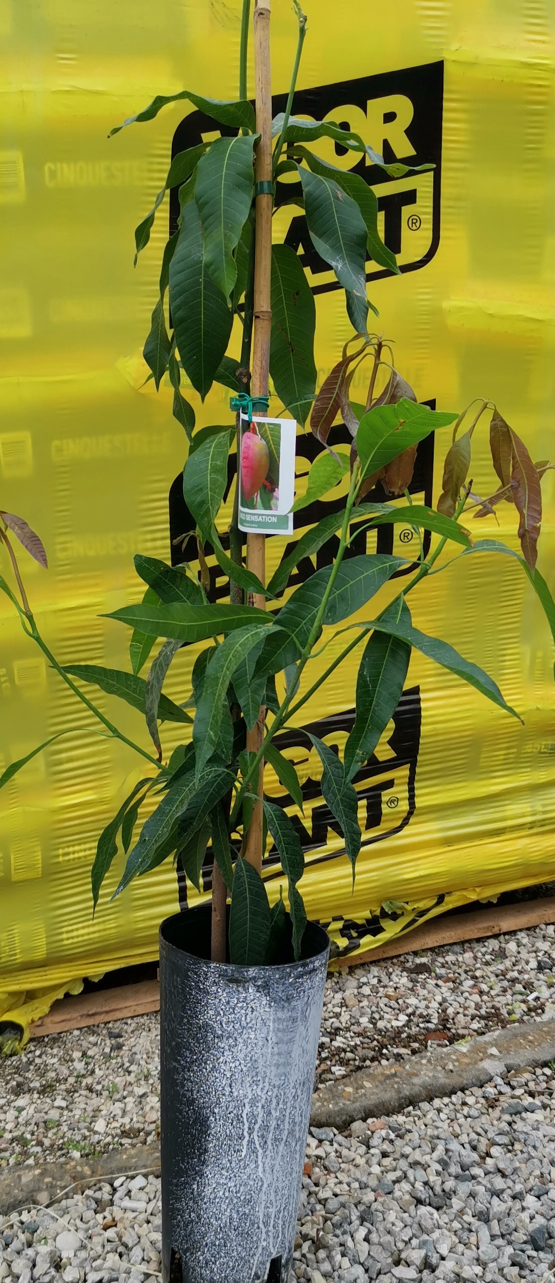 La pianta di Mangifera indica “Maya” (Mango) è un albero sempreverde di origine israeliana. Produce frutti di forma ovoidale, di colore giallo con sovracolore rosso, polpa giallo-arancio molto gustosa, dal profumo intenso e grosso nocciolo che occupa buona parte del frutto. Ricchi di vitamina A e C, sali minerali come calcio, ferro, magnesio, potassio e carotene. In cucina sono utilizzati nella preparazione di salse agrodolci da servire con pollo o a carni grigliate, in pasticceria nella preparazione di dolci e gelati. Queste piante possono essere coltivate anche in vaso in appartamento. Temperatura minima: 5-7 °C. Famiglia: Anacardiaceae. Provenienza: Israele. Luce: molta luce, pieno sole. Temperatura minima: 5-7 °C. Annaffiatura: mantenere il terreno umido, evitando i ristagni idrici. Terreno: morbido e drenante, terriccio universale. Concimazione: in primavera/estate somministrare del concime granulare.