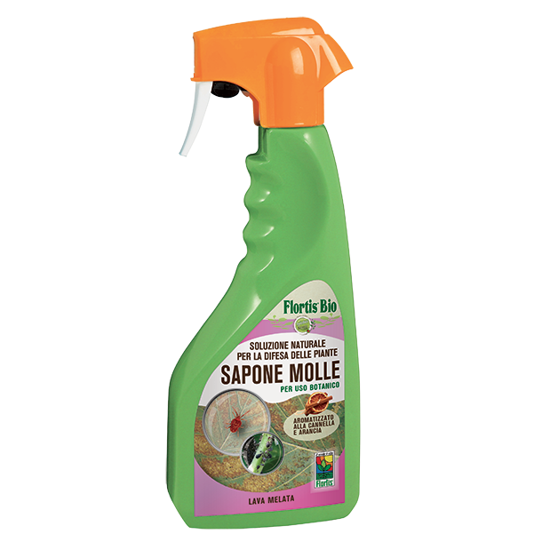 Sapone aromatizzato alla cannella e arancia. Ha un’azione corroborante nei confronti degli insetti a cuticola morbida come afidi, aleurodidi e nei confronti degli acari. Agisce per contatto, ammorbidendo la cuticola e provocando il soffocamento. Sugli acari svolge un’azione essiccante inoltre l’aromatizzazione alla cannella e arancia li allontana. Esplica un’azione indiretta contro le fumaggini, poiché favorisce lo scioglimento della melata prodotta dagli insetti. É applicabile in orticoltura e giardinaggio e può essere utilizzato in qualsiasi momento del ciclo produttivo. Non lascia residui. Prima del consumo dei frutti si consiglia di far passare almeno 48 dal trattamento per dare tempo al prodotto di agire.
